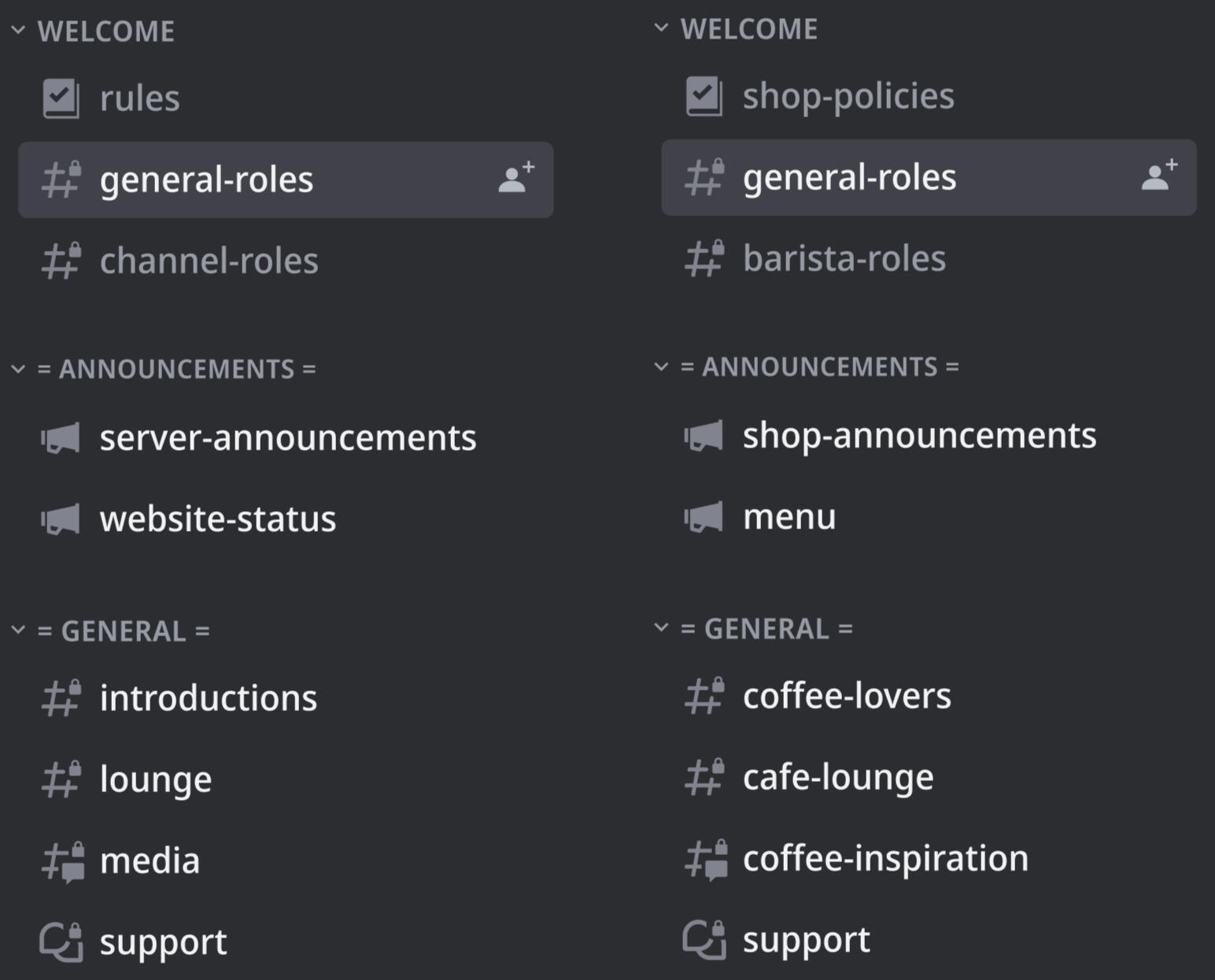 Creating a new server isn't necessary to change the theme or style of what you want. With Brew(r), you'll be able to easily rename your server's roles, categories, and channels with new descriptions and colors!