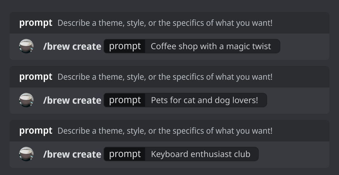 Brew(r) will be able to bring your ideas to life in minutes at the touch of a prompt generating you new categories, roles, and channels set with their own colors, descriptions, and even permissions!